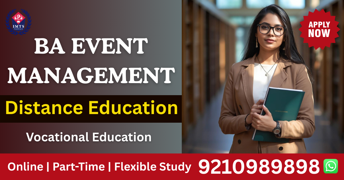 BA Event Management Distance Education Admission 2026 offers flexible, affordable education in the expanding event industry. This three-year program covers event planning, budget management, vendor coordination, and marketing comprehensively. Eligibility requires 10+2 with 45-50% marks, with simple online applications till 30 March 2026. Distance learning provides recorded lectures, study materials, and online support for convenient education.