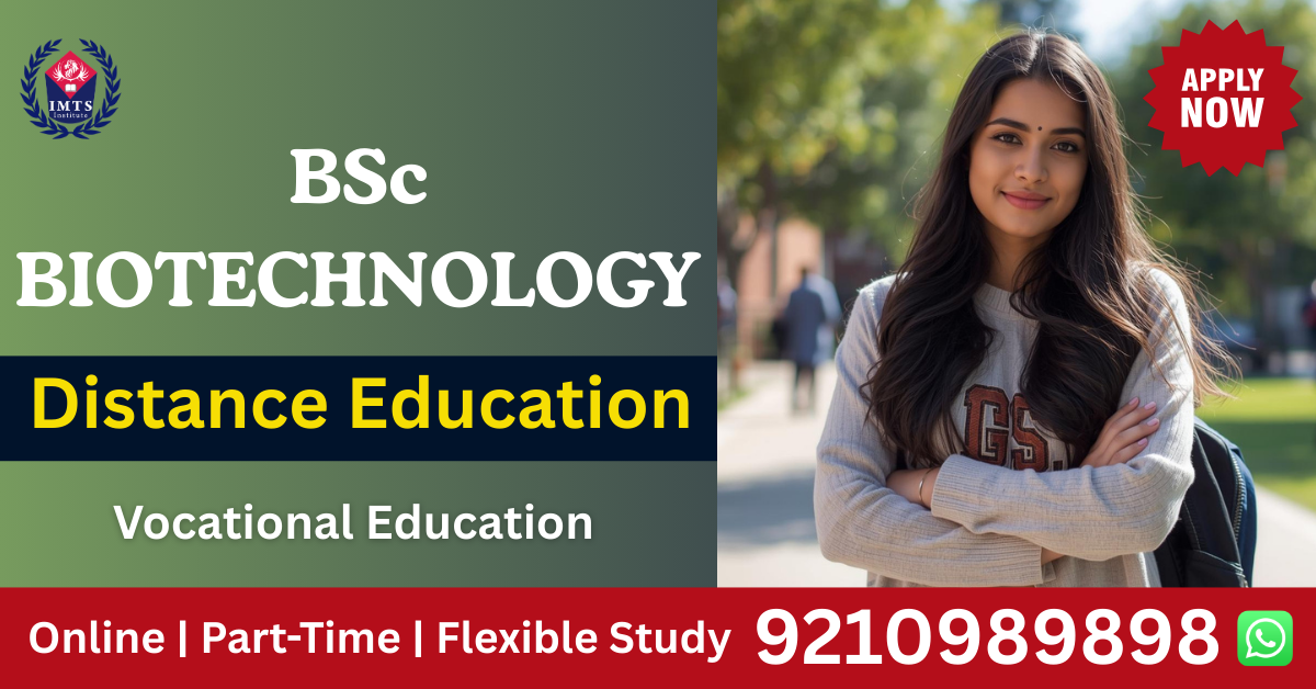 Course Description: BSc Biotechnology Distance Education delivers comprehensive training in biological sciences and technology applications through flexible online platforms over three years.