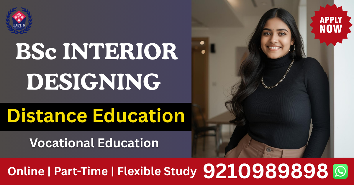 BSc Interior designing Distance Education Admission 2026 opens doors for creative professionals seeking flexible learning pathways. This undergraduate program develops spatial planning, color coordination, and designing visualization skills essential for modern interiors. The three-year course requires 10+2 completion with 45% marks from recognized boards, welcoming students from all academic streams. Distance learning delivers practical knowledge through digital platforms, covering furniture designing, architectural drafting, and sustainable spaces. Leading institutions including IGNOU and IMTS Institute accept applications closed on 30 March 2026. with fees ranging INR 15,000 to INR 40,000 annually. Students master AutoCAD, 3D modeling, material selection, and client management without attending regular classes. The program suits working professionals and homemakers balancing personal commitments with career advancement goals. Graduates enter residential designing, commercial spaces, hospitality interiors, and independent consultancy roles. This flexible education model maintains academic standards while providing accessibility to aspiring designingers nationwide, ensuring quality training meets industry requirements effectively.