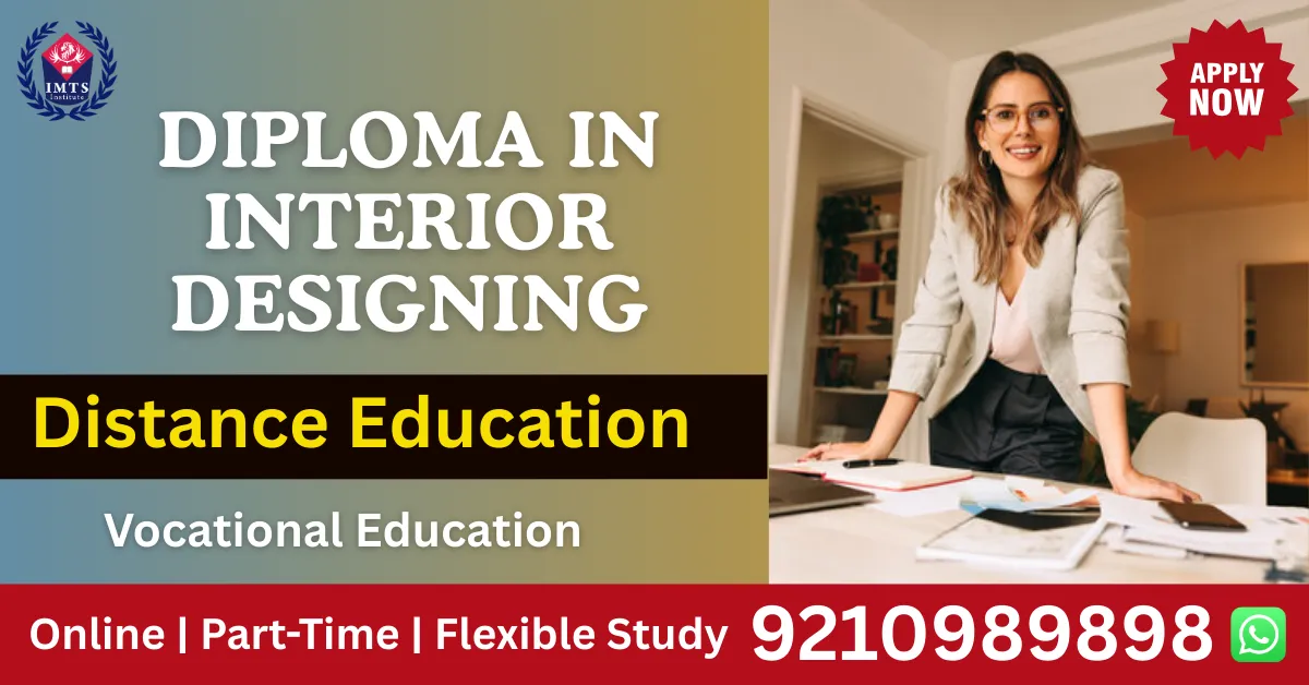 Diploma in Interior Designing Distance Education Admission 2026 opens doors for creative minds seeking flexible learning in spatial design and aesthetics. This one-year professional program trains students in AutoCAD, 3D modeling, color theory, and space planning through comprehensive online modules. Students gain practical skills in furniture design, lighting techniques, and material selection while managing existing work or family commitments. The program charges approximately INR 15,000 to INR 40,000 total fees, making quality design education accessible to all backgrounds. Admission Closed on 30 March 2026 in leading institutions. Universities like IMTS Institute, MIT University Sikkim, and Annamalai University offer UGC-approved distance programs with strong industry connections. Graduates secure positions as interior designers, space planners, and design consultants earning INR 2.5 to 6 lakhs annually. This qualification suits working professionals, homemakers, and recent school graduates wanting creative careers without traditional classroom constraints.